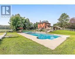 10258 Highway 9 presents a rare opportunity to own an extraordinary 91-acre corner estate in Ontario's highly desirable rural landscape, bordering Caledon with the Humber River flowing through the property. With prime frontage on Highway 9, this exceptional property offer sun matched visibility, accessibility, and future potential. This fully renovated century home features 3+1 bedrooms and showcases timeless charm blended with modern luxury. Enjoy the private pool and spa retreat, dedicated BBQ building, and breathtaking south-east views stretching toward the Toronto skyline. Rolling paddocks and open countryside create a truly picturesque setting. Equestrian and agricultural enthusiasts will appreciate the impressive infrastructure, including 12paddocks, approximately 30 acres of productive hay fields, a 50' x 140' indoor arena, 150' x 140'outdoor sand ring, standalone 12-stall barn with additional stalls, and a 50' x 40' heated and insulated building currently operating as a country artisan store. With worked acreage, a bunkie, strong road exposure, and location on a regional road for easy commuting in both directions, this property is ideally positioned for a variety of uses - private estate living, equestrian operations, agricultural pursuits, or a high-visibility business venture. A rare blend of lifestyle, income potential, and long-term investment value - properties of this caliber and location seldom come to market. Act fast. (id:61594)