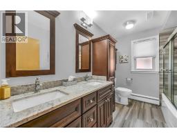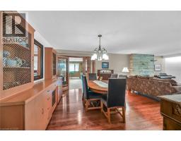Rare Find in Dundas! This exquisite bungalow offers approx. 2,024 sq ft of one-floor living with a double car garage, 3 spacious bedrooms, and 3 full bathrooms. Located in a sought-after area, it blends timeless charm with modern updates. The main level showcases gleaming hardwood floors, a sun-filled living room with motorized blinds and a wood-burning fireplace, plus French doors leading to a cozy family room addition with custom built-in cabinetry and walkout to the beautifully landscaped backyard. The oversized dining room includes an elegant built-in, ideal for both entertaining and everyday living, while the bright eat-in kitchen offers abundant cabinetry, built-in appliances, and a granite sink. The large primary suite overlooks the gardens and features a private 3-piece ensuite. The finished basement offers pot lighting, a spacious rec room with bar, an additional bathroom, and generous storage. Highlights include a metal roof, recent hot water boiler (2025), and a private 60.93’ x 169.94’ gorgeous lot. From the moment you walk into this home, you will appreciate the value it has to offer. Close to trails, shops, restaurants, amenities, and highway access. RSA (id:61594)