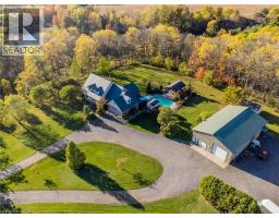 A COUNTRY ESTATE WITH A CRAFT TWIST. This is a rare opportunity where lifestyle and business beautifully intertwine. Set on over 13.7 picturesque acres, this extraordinary property offers both a thriving licensed brewery operation and an immaculate 4+1 bedroom country home, creating a one-of-a-kind package for those seeking to live, work, & dream all in one place. As you arrive, the winding drive opens to sweeping lawns and mature trees framing a stately 3,000+ sq ft home, custom built in 2005. Step inside to find a warm, light-filled interior-where hardwood floors flow through spacious gathering areas, a family-sized kitchen with maple cabinetry, and a cozy living room overlooking the grounds. Generous bedrooms and a versatile loft above the garage offer plenty of space for family or guests. Outside, your backyard retreat awaits-complete with a 16’ x 32’ inground pool with its own pump house & change room, and a charming pergola with a wood-burning stone fireplace, perfect for evening gatherings under the stars. Beyond the home lies a working countryside haven: 2.25 acres of hop yard, 4.5 acres of rented hay field, + multiple outbuildings — including a 40’ x 64’ heated shop, 24’ x 48’ storage barn, & 14’ x 20’ garden shed. The highlight, of course, is the Steel Wheel Brewery, a locally beloved destination with a fully equipped brewhouse (2017), a welcoming taproom, and a Sea-Can kitchen that allows the space to operate as a full bar & restaurant. The brewery building spans 2,688 sqft, powered by 400-amp service and propane heat, and comes complete with stainless-steel tanks & equipment-offering everything you need to continue or expand. Recent upgrades include a new steel roof (2025), propane heat & AC (2024), & updated electrical throughout. Whether you’re an entrepreneur ready to take over a successful craft brewery or a family seeking a self-sustaining property with space to grow, this address captures the heart of rural living & the spirit of entrepreneurship. (id:61594)