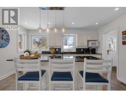 Welcome to this charming mid-century red brick bungalow tucked away on a quiet, tree-lined street in Barrie's beloved Codrington neighbourhood. Known for its mature trees, friendly community feel, and easy access to schools, parks, and the waterfront, this east-end pocket is one of the city's most desirable places to call home. From the moment you step onto the covered front porch, you'll feel the warmth this home offers. Inside, the bright open-concept main floor is filled with natural light from large windows, creating an easy, comfortable flow for everyday living. The living and dining area features a cozy electric fireplace and a charming built-in cabinet that adds character and function.Three main-floor bedrooms are served by a full bath with double sinks-perfect for busy family mornings. The modern kitchen is truly the heart of the home, with a large island for gathering, cooking, and connecting, plus direct access to the backyard deck for effortless indoor-outdoor living. Downstairs, the high ceilings and oversized windows make the lower level feel welcoming and bright. A spacious family room with a gas Franklin stove creates the perfect setting for movie nights or relaxed evenings in. An additional large bedroom with an oversized closet and semi-ensuite access offers flexible space for guests, teens, or extended family.The fully fenced backyard is ready for summer-featuring a two-tier deck for barbecues, plenty of room for kids to play, and space to unwind. A carport and garden shed add everyday convenience. With recent updates including new upper windows (2025) and a new front door (2026), this is a home that blends timeless charm with modern comfort - all in a neighbourhood you'll love being part of. (id:61594)