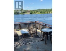 Moore Lake - Renovated Lakefront Retreat with Sunset Views. Exquisite west-facing lakefront property on beautiful Moore Lake, just two hours from the GTA. This private, maturely treed lot offers 154 feet of shoreline and spectacular sunset views, with year-round access at the end of a quiet cul-de-sac.Extensively renovated, the charming 1.5-storey cottage has been transformed into a refined four-season retreat, blending modern comforts with rustic character. Inside, soaring cathedral pine ceilings, custom built-ins, and a sun-filled open-concept layout create a warm and welcoming atmosphere. The sunroom flows seamlessly to the expansive lake-facing deck, offering the perfect space for entertaining or relaxing.The fully updated kitchen and bathrooms, stylish lighting, and high-quality finishes throughout make this home move-in ready. The lower level offers flexible space with a walkout-ideal for a third bedroom, studio, or workshop.Step outside to enjoy curated outdoor living at its best: a new outdoor kitchen, professionally landscaped stone pathways, a lakeside firepit, and 470 sq. ft. of decking plus an extensive dock system ideal for swimming and boating. A detached double garage, adorable bunkie, and charming children's playhouse complete the package. Whether you're seeking a peaceful family getaway or an entertainer's dream, this turnkey property delivers timeless lakefront living with all the modern upgrades. (id:61594)