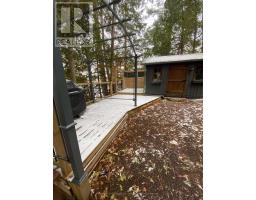 Moore Lake - Renovated Lakefront Retreat with Sunset Views. Exquisite west-facing lakefront property on beautiful Moore Lake, just two hours from the GTA. This private, maturely treed lot offers 154 feet of shoreline and spectacular sunset views, with year-round access at the end of a quiet cul-de-sac.Extensively renovated, the charming 1.5-storey cottage has been transformed into a refined four-season retreat, blending modern comforts with rustic character. Inside, soaring cathedral pine ceilings, custom built-ins, and a sun-filled open-concept layout create a warm and welcoming atmosphere. The sunroom flows seamlessly to the expansive lake-facing deck, offering the perfect space for entertaining or relaxing.The fully updated kitchen and bathrooms, stylish lighting, and high-quality finishes throughout make this home move-in ready. The lower level offers flexible space with a walkout-ideal for a third bedroom, studio, or workshop.Step outside to enjoy curated outdoor living at its best: a new outdoor kitchen, professionally landscaped stone pathways, a lakeside firepit, and 470 sq. ft. of decking plus an extensive dock system ideal for swimming and boating. A detached double garage, adorable bunkie, and charming children's playhouse complete the package. Whether you're seeking a peaceful family getaway or an entertainer's dream, this turnkey property delivers timeless lakefront living with all the modern upgrades. (id:61594)