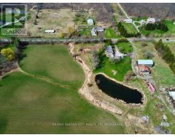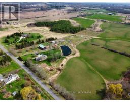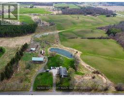 Over 23 Acres of private country living, yet only minutes to all amenities and the QEW. Picturesque property with rolling fields, tree lines and pond. Suitable for many agricultural uses. Older 2 storey board and batten barn with hand-hewn beams in need of some TLC for those wedding venues. Circular drive with a solid open concept bungalow built in the 60's. Attached double car garage addition with full walkout basement, rec room, 2pc bath, wine cellar, mudroom with sink and counter. Two bedrooms on the main floor, the master with 4pc ensuite privileges. Open concept living and dining area with maple hardwood flooring, Freshly renovated kitchen with granite counters and island, built ins, vaulted ceiling with pot lights, open to a massive family room, bright windows throughout, patio doors to a private backyard patio overlooking your pond and property. This one of a kind property could be an unbelievable homestead with some imagination and TLC. (id:61594)
