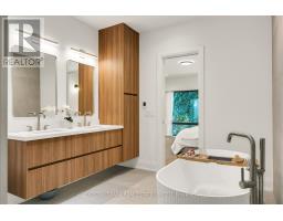 Tucked away on a quiet, tree-lined cul-de-sac in coveted Upper Forest Hill, this custom-built home offers over 3,500 sq. ft. of meticulously crafted living space. Designed with both sophistication & function in mind, every detail has been carefully considered to create a residence that is as stylish as it is welcoming. Step inside & feel the sense of light & openness that defines the main floor. Soaring 10 ceilings & expansive windows flood the living & dining spaces with natural light & sleek finishes set a tone of understated luxury. At the heart of the home, the kitchen impresses with a striking waterfall centre island, premium integrated appliances & storage, the perfect balance of beauty & utility. The family room, anchored by a modern gas fireplace & stone facade, opens seamlessly onto the deck & backyard. The architectural glass & wood staircase rises gracefully to the 2nd level, where 3 skylights brighten every step. The primary bedroom is a sanctuary, featuring a generous walk-in closet & a 5-piece spa-like ensuite with a deep soaker tub, double vanity & heated floors. 3 additional bedrooms are well-proportioned, sharing a contemporary 4-piece hall bath, while a convenient second-floor laundry adds ease to everyday living. The lower level extends the home's living space with incredible versatility & feels like a main floor with a walkout to a covered patio & nearly floor to ceiling windows. A spacious rec room, complete with a wet bar, provides the ideal backdrop for casual entertaining. A 5th bedroom & full 3-piece bathroom are perfectly suited for guests, while the mudroom with rough-in for a 2nd laundry & direct garage access & heated floors enhances convenience. This home is more than just a beautiful place to live - it's a lifestyle. A true blend of modern design, thoughtful function & Perfectly located near top-rated schools, the shops & restaurants along Eglinton & convenient TTC access. (id:61594)