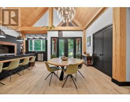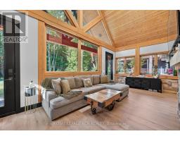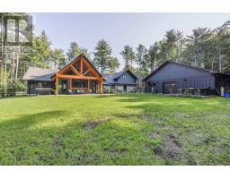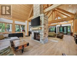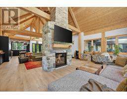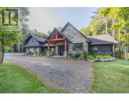 Welcome to this stunning 2022 custom-built post & beam home nestled on over an acre of privacy at the end of a quiet cul-de-sac surrounded by green space. Every inch of this home is fully customized-nothing builder grade- with design and craftsmanship that set it apart. Step inside the spectacular 24' vaulted great room where soaring beams, a floor-to-ceiling double-sided stone fireplace, and radiant heated floors set the tone for comfort and style. The chef's kitchen is a true showpiece with solid walnut accents, a Fulgor Milano 48" propane range with double ovens, built-in coffee maker, wine fridge, and oversized fridge/freezer-perfect for entertaining. The primary bedroom offers 14' ceilings, a walk-in closet with library ladder, custom storage, a spa-inspired ensuite with rain shower and body jets, and a private fireplace. With 3 bedrooms, plus a loft and the option for a separate in-law suite, this home is ideal for families or hosting guests. Smart Home technology elevates daily living with voice-activated control of lighting, blinds, fireplace, security, HVAC, and media throughout. Outside, enjoy a fenced backyard with gardens, a firepit, a Hydropool hot tub, and a full outdoor kitchen and bar-your private Muskoka resort. The property also boasts and incredible 50' x 50' detached workshop/garage, fully insulated with radiant in-floor heating, HVAC, water, washroom, compressed air lines, and oversized doors-perfect for hobbies, storage, or business needs. From spray foam insulation and 50-year shingles to custom walnut doors and chandeliers, this home blends efficiency, luxury, and craftsmanship at every turn. 10 minute drive to Gravenhurst, 18 minute drive to Bracebridge, 23 minute drive to Orillia. You will never see a house like this one with every inch of this home upgraded. Your Muskoka dream home awaits. (id:61594)