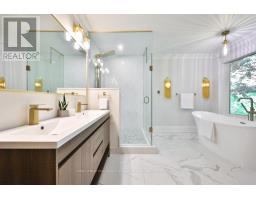 An incredibly rare opportunity to live on a highly coveted cul-de-sac in the heart of Lorne Park, this fully renovated home offers stunning Muskoka-like views and exceptional privacy. The impressive curb appeal includes a new paver walkway and grand double door entry, opening to a warm, inviting interior with oversized windows framing the lush ravine scenery. With over 4,400 square feet of total living space, this move-in ready home features 5 above-ground bedrooms (4 upstairs, 1 at ground level), boasts gorgeous new hardwood floors, smooth ceilings throughout, renovated baths, 2 laundry rooms, new windows/doors, and a finished walkout basement. At the heart of the home is a modern renovated kitchen with walkout to a large deck perfect for morning coffee or al fresco dining overlooking the serene, wooded ravine. The spacious living room with wood-burning fireplace and adjacent dining area are ideal for entertaining, while the cozy family room with a second fireplace and walkout to deck, is perfect for relaxing evenings. The upper level offers a luxurious primary suite with wall-to-wall closets and a spa-like 6-piece ensuite with heated floors, soaker tub, glass enclosed shower and double vanities. A second bedroom includes a renovated 3-piece ensuite, while two additional bedrooms share a stunning 5-piece bath. Also upstairs: a media/den space, cedar closet, custom storage room, and full laundry. The walkout lower level features a rec room with fireplace and walkout to the stunning yard with private ravine views, kitchenette, 3-piece bath, and a bedroom with ravine views ideal for teens or in-laws. A second laundry room and access to the backyard complete the space. Outdoors, enjoy a large yard and flagstone patio perfect for children and pets to run and play. Walk to top schools and trails. Minutes to Mississauga Golf & Country Club, Port Credit, QEW, and GO stations. A truly rare turnkey offering in one of Mississauga's most prestigious neighbourhoods. (id:61594)
