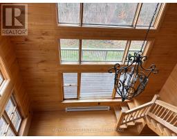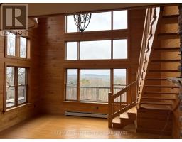 Situated on an elevated 19 acre parcel with incredible panoramic views you will find this 2+1 bedroom, 2 full bathroom home. Atop the development's plateau and nestled into rock outcroppings and Canadian Shield, privacy is abundant up the windy elevated drive. South facing with oversized windows the natural light is plentiful. Hardwood flooring throughout with natural wood tones in the tongue and groove walls and ceilings give this year round home a chalet feel. Other features include a wood fireplace in great room, bonus second level flex space, partially finished walkout basement, and wrap around deck. Come see this beautiful property in the heart of South Frontenac! (id:61594)