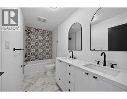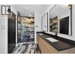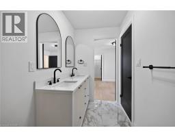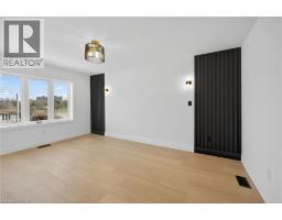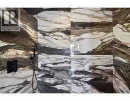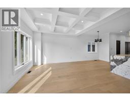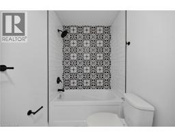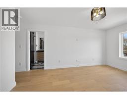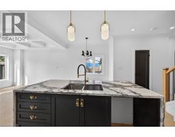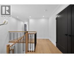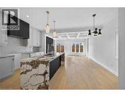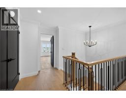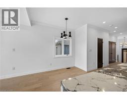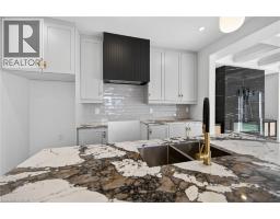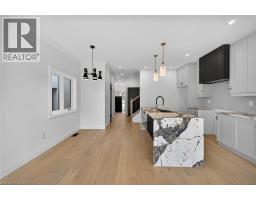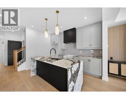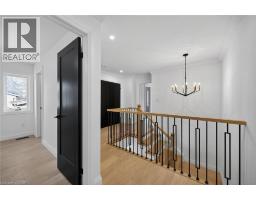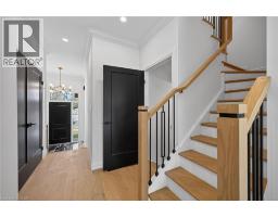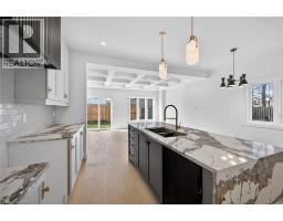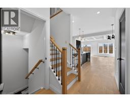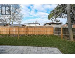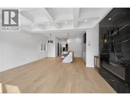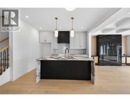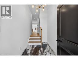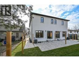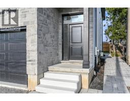 WELCOME TO THIS STUNNING NEW BUILD. This 1675 square foot semi-detached residence boasts an attached garage. A significant investment of $20,000 was made in enhancing the exterior, including a newly paved driveway, interlock stone walkway and patio, backyard fencing and meticulous landscaping. Upon entering, the main floor reveals a stately foyer, 9 ft ceilings, powder room, gourmet kitchen equipped with quartz countertops, island and porcelain tile backsplash, open concept dining area, great room featuring coffered ceilings and potlights, custom designed fireplace and walkout access to the rear yard. The upper level comprises three generously sized bedrooms, including the master suite complete with walk-in closet, opulent 4-piece ensuite featuring double vanity and glass shower. Two additional bedrooms, each with walk-in closets, share a 5-piece bathroom, each having ensuite privileges. A conveniently located laundry room is situated on this level. The unfinished, high basement offers endless possibilities for customization. Additional notable features and upgrades include engineered and porcelain flooring throughout, slat walls, potlights, designer lighting, to name a few. A comprehensive Tarion warranty is available. The property is advantageously situated in close proximity to schools, parks, church, Mohawk College, the Lincoln Alexander Parkway, Highway 403 and McMaster University. (id:61594)