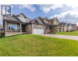 Welcome to this spectacular family home located in the highly sought-after Warbler Woods neighbourhood in southwest London. Backing onto scenic walking trails, this home offers the perfect blend of nature, luxury, and convenience. Just 10 minutes from Highways 402/401, Western University & downtown London, it's an ideal location for families and professionals alike. Key Features: Bedrooms: 3+2 spacious bedrooms. Bathrooms: 3.5 beautifully appointed baths, heated floors & pocket doors. Main Floor: Open concept with rich hardwood flooring, upgraded lighting and lots of pot lights, large windows, and cathedral ceilings in the family room. Kitchen: Gourmet kitchen featuring quartz countertops, dark 8-foot island, pots & pans drawers, slide-out spice drawers, under-valance lighting, and top-of-the-line Jen Air appliances including gas stovetop, wall oven, and built-in microwave. Primary Retreat: Main floor primary bedroom with large walk-in closet and a 5-piece spa ensuite boasting quartz counters, double sinks, heated floors, hot tub, and glass shower. Upper Level: Two generously sized bedrooms with a 5-piece main bath featuring double sinks. Basement: Approximately 1,460 sq ft of finished space with two large bedrooms, full bath, kitchenette, and in-law potential. There is about total 3600 sq ft finished living space. Exterior: Stone facade and full brick exterior with a covered concrete patio and gas BBQ line. Parking: 50-foot lot with a four-car driveway and no sidewalk for easy parking. Extras: Built-in central vacuum system and security system. This superbly finished home is easy to show and perfect for multi-generational living or those seeking elegant comfort and convenience in one of London's most desirable communities. Don't miss out on this incredible opportunity! (id:61594)