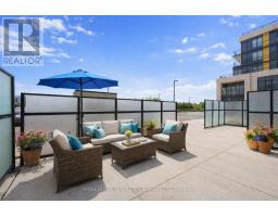 PRESENTING SUITE #104 IN DISTRIKT TRAILSIDE 2.0 - A PRISTINE TWO BEDROOM, TWO BATHROOM GROUND FLOOR CONDOMINIUM IN THE GLENORCHY COMMUNITY! Perfectly situated within walking distance of shopping, dining, Sixteen Mile Sports Complex, parks, and scenic trails, this location offers an ideal blend of convenience and lifestyle. Enjoy the ease of ground floor living - no waiting for elevators - making it an ideal option for dog owners or anyone who values direct access to the outdoors and an expansive private terrace. This designer suite features a recently painted interior, 10' ceilings, laminate flooring, and oversized windows that fill the space with natural light. Step outside to the impressive 263 square foot terrace, complete with a gas line for a BBQ - perfect for relaxing, entertaining, or enjoying seamless indoor-outdoor living. Thoughtfully designed for modern living, the open concept layout includes a bright living room with walkout to the terrace, extending your living space in a way upper-level units simply can't offer. The contemporary kitchen is equipped with full-size Whirlpool stainless steel appliances, while the spacious primary bedroom offers a spa-inspired three-piece ensuite. A versatile second bedroom is ideal for guests or a home office, complemented by a luxurious four-piece bathroom and convenient in-suite laundry. Residents enjoy access to an impressive array of amenities, including a chic lobby with 24-hour concierge, lounge, games room, double-height fitness studio with state-of-the-art equipment, dedicated indoor and outdoor spaces for yoga and Pilates, a rooftop terrace with BBQs, and ample visitor parking. Commuters will appreciate easy access to public transit, major highways, and the GO Station. An exceptional opportunity to enjoy life in one of North Oakville's premier communities, with everything close at hand. (certain images have been digitally enhanced and virtually staged) (id:61594)