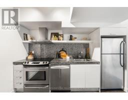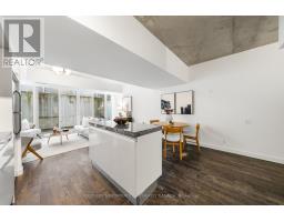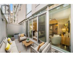Discover 828 square feet of refined, contemporary living in this spacious 1-bedroom loft at 75 Portland - an architectural landmark designed with Philippe Starck's unmistakable vision. Set on the main level and quietly tucked away from the energy of King and Portland, this suite offers a rare sense of calm in the heart of downtown's most vibrant neighbourhood. Inside, the loft unfolds with effortless flow. A sleek, oversized kitchen with a centre island anchors the home, creating a natural space for gathering and entertaining. The open-concept layout offers generous room for a home office while maintaining a warm, inviting atmosphere throughout. Step outside to a private 100 sqft terrace with BBQ gas line - an intimate outdoor retreat that feels like an extension of the living space. Perfect for slow mornings, relaxed evenings, or alfresco moments that elevate everyday living. The tranquil bedroom features wall-to-wall closets that blend clean design with exceptional storage. A well-appointed four-piece bath completes the suite with a thoughtful, timeless finish. As one of King West's most design-forward communities, 75 Portland offers residents access to its bold open-air courtyard and Starck's signature 100-foot indoor-outdoor communal table - amenities that blur the boundaries between architecture, art, and urban life. Placed within one of King West's most walkable pockets, you're steps to Victoria Memorial Square, St. Andrew's Dog Park, Stanley Park, and the endless cafés, boutiques, restaurants, and fitness studios of King West, Queen West, and The Well. Here, design, convenience, and city living converge in a way that feels both vibrant and deeply peaceful. A truly rare offering - come experience it for yourself. (id:61594)