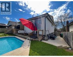 104 Cindy delivers exceptional flexibility in this spacious 3+1 bedroom raised bungalow, featuring a separate entrance to the fully finished lower level, ideal for multigenerational living, guests, or a private home office. Situated on a quiet street, you’re within walking distance to schools, shopping, and amenities, with quick access to the 401 for easy commuting. Curb appeal shines with a freshly painted exterior, updated soffit, fascia and eaves (2022), a double-wide driveway, and a welcoming front porch, the perfect spot to relax outdoors. Step inside to a bright, refreshed main level with new flooring (Nov 2025), recessed lighting, elegant crown moulding, and timeless California shutters. The stunning kitchen is a true centerpiece, featuring sleek built-in appliances, abundant cabinetry, and a thoughtful layout that keeps daily living organized and effortless. A large separate dining room offers ample space for entertaining. The main level includes three well-sized bedrooms and a 4-piece bathroom, with both the primary bedroom and second bedroom/office offering sliding doors to the raised deck and unobstructed views of the backyard and pool, perfect for morning coffee or an afternoon dip. The lower level is a standout feature, with its own separate entrance off the garage, a spacious rec room, a fourth bedroom, and a 3-piece bathroom with standalone shower, providing ultimate privacy and versatility. Out back, the heated in-ground pool anchors multiple outdoor living areas, including a lower dining deck, gas BBQ line, and a storage/changing shed. A robotic pool vacuum (2021) keeps maintenance effortless, leaving you free to enjoy weekends, pool parties, and the summer season to the fullest. (id:61594)