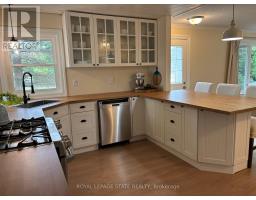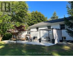 Country living - close to town & all amenities! This 3+1, 2.5 bath bungalow on sought after 173 x 300 private mature treed lot. Great curb appeal with brick & vinyl sided exterior with attached garage, ample parking, deck, large patio and private mature treed backyard. Breezeway foyer to open interior layout: kitchen with breakfast bar, stainless steel appliances, spacious living/dining room with electric fireplace, 3 beds, 4 pc main bath & 2 pc guest, basement with family room, bedroom, 3 pc bath, laundry & storage. Enjoy the private yard, deck, new patio (2025), hot tub (as-is) and large lawn area, edged with mature trees. Shed with power. Updates include Septic 2022, windows, weeping tile and waterproofing, large patio, some siding, main bathroom, interior painting throughout, interior doors & trim, laminate flooring & carpeting in bedrooms (original hardwood underneath). Some minor finishes will make it your own! RSA (id:61594)