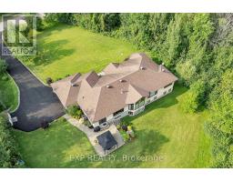 Located in the sought-after Arbourbrook Estates community in Carp, this custom-built bungalow with an oversized 2-car garage and the home offers over 5,000 sq. ft. of finished living space, including a full in-law suite with a separate entrance ideal for multigenerational living or rental potential. Set on a beautifully landscaped lot, the home features full interlock stonework from front to back, delivering exceptional curb appeal and low-maintenance durability. Inside, you'll find soaring 12-foot ceilings in the foyer and hallway, and a stunning 14-foot cathedral ceiling in the living room. Solid wood doors and premium finishes throughout the main level highlight the quality craftsmanship. The gourmet kitchen is equipped with rich cabinetry, granite countertops, and opens into a warm and inviting family room with custom-built-ins and a fireplace mantel perfect for everyday living and entertaining. The main floor offers 3 spacious bedrooms, while the fully finished lower level includes 2 additional bedrooms, large look-out windows, fully equipped in-law suite with its own private entrance. Additional highlights include: Roof has 40-year shingles, A/C, Furnace, and hot water tank recently replaced. This home is truly worry-free. Conveniently located just minutes from Carp, Stittsville, and easy highway access, this exceptional home is a rare find that blends luxury and versatility. (id:61594)
