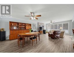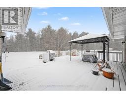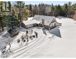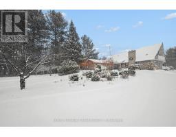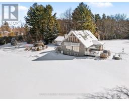 Set on over 4 acres of picturesque land, this spacious two-storey stone home offers the perfect blend of comfort, functionality, and peaceful country living. Step inside to an spacious and inviting living room featuring rich hardwood floors and a cozy gas fireplace-ideal for relaxing evenings. The kitchen is both functional and welcoming, featuring a convenient breakfast bar for casual meals, plenty of counter space, and an abundance of cabinetry to keep everything organized and within reach. Ideal for everyday living, the eating area is open to the bright family room which offers the warmth and ambiance of a charming pellet stove. A separate, light filled dining room offers direct access to a backyard deck overlooking your own private oasis. The main floor offers the added convenience of an expansive primary bedroom, providing a comfortable and accessible retreat with plenty of space to unwind. Two full bathrooms on this level add flexibility for family living or guests. A practical laundry/mudroom provides direct access to the attached double garage, making daily routines effortless. Upstairs, you'll find two generously sized bedrooms, each offering its own unique charm. One features soaring ceilings and warm wood finishes, creating a cozy, cabin-like feel that's both inviting and full of character. A full bathroom on this level completes the space, making it ideal for family members or visiting guests. The partially finished basement adds even more living space, featuring a large family room with a pellet stove, a wet bar for entertaining, a half bathroom, and ample storage space. Outdoors, the possibilities are endless. With over 4 acres to call your own, there's room to garden, explore, create recreational spaces, or simply enjoy the peace and quiet of nature. Surrounded by mature trees and lush greenery, this property offers exceptional privacy, room to breathe, grow, and create lasting memories. (id:61594)