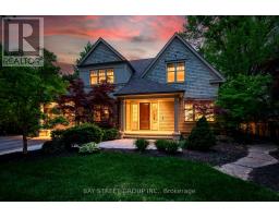 Situated on a quiet cul-de-sac in Morrison, this Gren Weis designed, Hallmark-built Detached residence offers 5,687sqft (3745+1942sf bsmt) of luxury across three spacious levels, including 4 bedrooms and 5 bathrooms. Cedar shake exterior, copper accents, and lush professional landscaping create a unique curb appeal in one of Oakville's most sought-after enclaves. Sitting on a quiet family friendly street, spacious garage parks 2 cars, and long driveway with no sidewalk! The interior detail blends timeless elegance with family functionality. The chefs Kitchen features premium appliances, custom cabinetry, and walk-out to a private, covered rear patio perfectly paired with a vaulted Family Room rich in character, natural light, and coffered ceilings. Formal living and dining rooms flow seamlessly for refined entertaining, while a main floor Office offers a private workspace. Upstairs, all bedrooms feature their own ensuite bathrooms, with the primary suite boasting a private balcony, expansive walk-in closet, and a spacious spa-inspired bath. Thoughtfully spaced secondary bedrooms ensure comfort and privacy for family and guests. The fully finished lower level is designed for relaxed living and recreation complete with a retro-style bar, fireplace, gym, fourth bedroom, and 4-piece bath. Close to top-rated schools including New Central (JK-6), Maple Grove (Gr 7-8), Oakville Trafalgar High School, E.J. James Public School (French Immersion), and esteemed Appleby College. Minutes to the QEW, Oakville GO Station, and Gairloch Gardens. Move-in ready! Minutes to the QEW, Oakville GO Station, and Gairloch Gardens. Move-in ready! (id:61594)