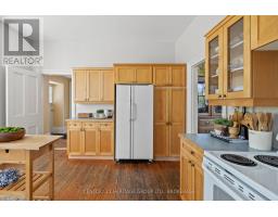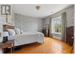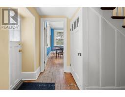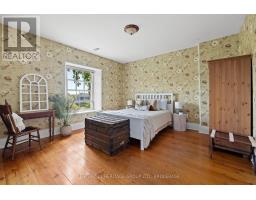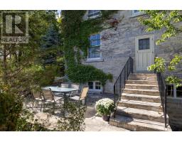 The once-formal gardens that surround this intensely pretty (and nicely updated) limestone and sandstone home just east of downtown Kingston have let their guard down just slightly. A chicken coop in one corner. Geometries hinted at rather than imposed. The barn leans so casually against the house it might be about to tell a good joke. The familiar touchstones are all here; mile-wide window ledges, softwood floors worn the colour of toffee or honeycomb, the wide porch like a dinner theatre stage. But there is more to 1049 than fearsome symmetry. A fireplace divides the living and dining rooms like a warm-hearted referee. Across the hall is a more private parlour, or home office. The wallpapers are modern, high-end, but nod knowingly to the history, as if William Morris popped by to tip his cap. There are four bedrooms, with ceilings high enough to accommodate the grandest of four-poster beds, the most elaborate of libraries. And the bathroom, on this level, dead-centre at the front of the house, is a period piece, with its clawfoot tub crouched beneath the window like a big white cat. The basement, home once, to Downton Abbey-level shenanigans, and steaming stock pots swinging above the fire, is a cool retreat from the upper-floor hubbub, and also where the laundry is managed. It is a rambling, stylish country home. The shooting parties are long past. The life on offer is more literary than that, more urban farmer, more university prof, more doctor. I imagine kids tearing between bedrooms, up and down the stairs; their laughter sticking to the walls. (id:61594)
