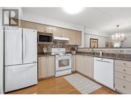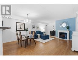 Spacious one-bedroom plus den, Hampton Model, in the highly desirable Uptown Orchard Condominium, offering over 800 sq. ft. of thoughtfully designed living space. This ground-floor suite features a walkout to a private patio backing onto a protected, treed ravine, the perfect setting for peaceful morning coffee or evening relaxation. Open-concept living and dining area, is complete with an electric fireplace, and flows seamlessly into the bright eat-in kitchen featuring ample cabinetry and generous counter space. The primary bedroom includes a double closet and a charming alcove ideal for enjoying the ravine views. The versatile den, complete with a walk-in closet, is ideal for a home office or guest bedroom. A four-piece bathroom conveniently incorporates an in-suite laundry. This suite includes one underground parking space and a storage locker. The clubhouse, just steps from your door, offers exceptional amenities including a gym, sauna, and party room with kitchen. Ample visitor parking is also available. Ideally located within walking distance to grocery stores, shops, restaurants, daycare, fitness centres, and public transit. Situated in North Burlington's Orchard community, with easy access to the GO Station, QEW, 407, and Bronte Park. Urban convenience meets tranquil ravine living. (id:61594)