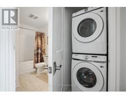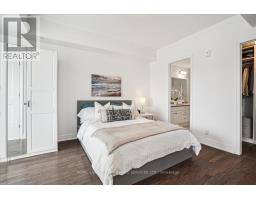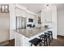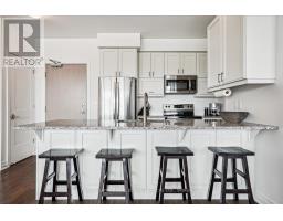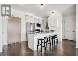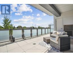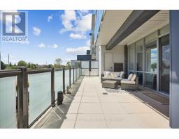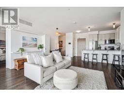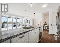 Stunning 2-bedroom + DEN condo offering 1,082 sq. ft. of beautifully finished living space, w/ a 423 sq. ft. private terrace featuring unobstructed south-facing views, the perfect spot to enjoy your morning coffee. Plus 2 car stacked parking. This home showcases engineered hardwood flooring throughout, 9 smooth ceilings, custom built-in shelving, & a true open-concept layout. Expansive great room is bathed in natural light thanks to wall-to-wall windows & flows effortlessly onto the terrace. The chef-inspired kitchen is a showstopper w/ extended white cabinetry, soft-close drawers, bi-fold lift uppers, granite countertops, stainless steel appliances, upgraded lighting, & an oversized breakfast bar perfect for casual dining or gathering with friends. The split-bedroom floor plan offers privacy. Primary suite featuring a walk-in closet with custom organizers, blackout blinds, & a spa-like 4-pc ensuite complete w/ a glass shower, double sinks, & classic subway tile. The second bedroom is generous, offering balcony views, closet organizers, & easy access to the main 4-pc bath. The den is a versatile space that can serve as a private office or reading nook, while in-suite laundry adds to the everyday convenience. The expansive terrace, measuring 37'8" x 12'7",offers the perfect blend of sun and shade, making it ideal for outdoor dining & lounging. This unit also includes a premium two-car stacked parking spot ($25,000 upgrade), along w/ a locker at underground level. Enjoy a refined boutique condo lifestyle w/ fantastic amenities including a lovely lobby, two-level party room, fully equipped fitness centre, rooftop terrace, ample visitor parking, & a dog washing station. Perfectly situated just steps to coffee shops, restaurants, shopping, & surrounded by scenic hiking trails, w/ easy access to the highway, transit, GO station, recreation centres, Oakville hospital, beautiful parks, & award-winning schools this incredible home truly has it all. (id:61594)