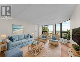 Unit 105 at The Commodore offers approximately 1,420 sq. ft. of comfortable, easy access living in one of Gananoque's most sought-after locations. Nestled on nearly 2 acres of beautifully maintained grounds, this residence combines convenience with a worry-free lifestyle right in the heart of the Thousand Islands. This spacious condo includes 2 bedrooms, 2 full bathrooms and a generous living/dining area. A dedicated laundry room comes equipped with a stacked washer and dryer and storage space. Being on the ground floor makes this unit especially accessible, while still offering privacy and easy access. The home is move-in ready with existing appliances, an owned hot water tank, deeded outside parking spot and a storage locker included. There is plenty of outside parking for guests or a second car. A rare highlight of this condo is the large wall to ceiling new windows, private outdoor space, accessible from two different rooms, creating a seamless connection between indoors and out. The Commodore is a pet-friendly community with excellent amenities, including a party room, workshop, fitness center, and bicycle storage. From here, you can walk to local restaurants, shops, the Playhouse Theatre, and nearby parks - or simply enjoy the scenic views of the Gananoque Marina, and Islands just steps away. Status Certificate available. Offers will be presented on November 4th. (id:61594)