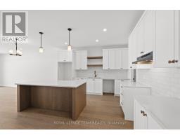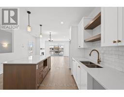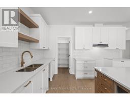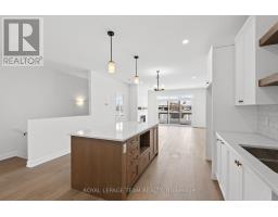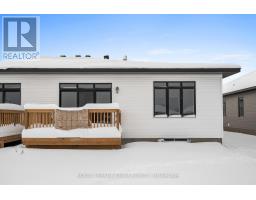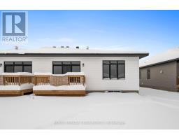 Welcome to Stirling Meadows in Brockville. This newly built semi-detached Grenville model by Mackie Homes offers approximately 1,580 square feet of thoughtfully designed living space. With three bedrooms, two bathrooms, convenient main-level laundry, and a single-car garage with interior access, this home combines style and functionality. A covered front porch invites you inside to a bright, open concept layout where the kitchen, dining area, and living room flow seamlessly. The kitchen features white cabinetry with a warm wood centre island, open shelving accents, quartz countertops, a tile backsplash, and a pantry for extra storage. The spacious centre island serves as a natural gathering spot. The living room is enhanced by a natural gas fireplace and provides access to the sun deck, ideal for outdoor entertaining or relaxing. The primary bedroom includes a walk-in closet and a four-piece ensuite with a dual-sink vanity. Two additional bedrooms and a full bathroom complete the main-level layout. Set near shopping, dining, and recreational amenities, with quick access to Highway 401, this home blends modern style with everyday practicality. (id:61594)