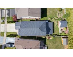 Bright and spacious open-concept 3-bedroom home in highly desirable North London, meticulously maintained and move-in ready. The main floor boasts a welcoming foyer, sun-filled living/dining area, and an eat-in kitchen with a generous island, stainless-steel appliances, and gas stove perfect for everyday meals or entertaining. Upstairs, the primary suite impresses with a vaulted ceiling, walk-in closet, and a spa-like Jacuzzi ensuite, while two additional bedrooms and a full bath provide plenty of space for family or guests. Beautifully finished lower level offers a large recreation room ideal for movie nights, play area, or home office. Outside, enjoy a private, fully fenced yard with no rear neighbors, upgraded backyard shades for summer comfort, a concrete pad with storage shed, and mature landscaping for easy care. Hardwood and ceramic floors on the two main levels mean no carpet to maintain, and a durable metal roof delivers long-term peace of mind. Located in the coveted North Ridge/Lucas school district, close to parks, shopping, and transit. A MUST SEE! (id:61594)