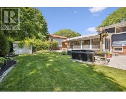 Welcome to 1059 Marley Crescent nestled in a family-friendly enclave in southwest Aldershot. Tucked on a quiet crescent, perfect for kids to walk to school, parks & bike the nearby trails. Easy access and commute to all major highways to Niagara, Hamilton or Toronto. Minutes to the RBG, community centre, GO Station & downtown Burlingtons boutique shops, cafes & restaurants. Pride of ownership shines throughout this fully renovated 4-level side split, featuring a single-car garage, an oversized double drive with space for 4 vehicle and bonus parking for a trailer or boat. Major upgrades invested in this open-concept main level with a white quartz kitchen, stainless appliances and a large island flowing into the living/dining area. Rustic beams, custom woodwork, diagonal luxury vinyl floors, LED pot lights, new trim, stainless/wood railing, fresh paint, built-ins & plush new carpet add warmth & style. Family room features two lookout windows & a cozy gas fireplace. A convenient 4th bedroom with ensuite access to the newly renovated 3-piece bath completes the third level. The basement offers spacious rec room with wall-to-wall closets, electric fireplace, striking feature wall & a den ideal for a home office. Other features: hot tub, above ground pool, fireplace, in-ground sprinklers. Exterior painted. Renovated, impeccably maintained & tucked into a serene, cedar-lined setting. (id:61594)