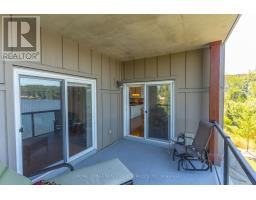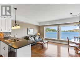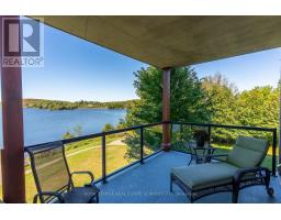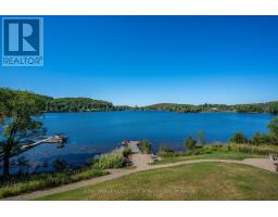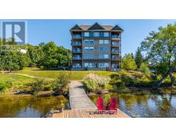Welcome to Granite Cove, where comfort, convenience, and natural beauty come together. This rare west-facing suite offers a lifestyle perfectly suited for retirees or those seeking a peaceful pace without compromising on space or style. With 1,385 sq. ft. (as per the developer), this 2-bedroom, 2-bathroom residence boasts a thoughtful floor plan that balances functionality and comfort. The generous layout ensures plenty of room for family or overnight guests, while still maintaining an intimate, easy-to-manage space. At the heart of the condo is a large eat-in kitchen, seamlessly combined with the living area. The bright den overlooks Head Lake and offers access to a spacious balcony with a built-in BBQ gas line perfect for morning coffee, entertaining, or watching the unforgettable Haliburton sunsets. The location is unmatched - just a short, level walk to town, you'll enjoy easy access to coffee shops, groceries, the pharmacy, and all essential services. Head Lake Park is right next door and offers endless recreation: a public beach, walking paths, a dog park, outdoor gym, tennis courts, and more. Whether you prefer quiet relaxation or staying active, its all just steps away. This rare suite represents an exceptional opportunity as a turn-key home or as an investment property in Haliburton's robust rental market. Features include: hardwood floors throughout, cozy broadloom in bedrooms, tall ceilings, ample storage, easy-access parking, a large storage locker, and very reasonable maintenance fees ($0.70 psf). The building is well maintained and known for its warm, caring community, complete with social events and a welcoming atmosphere. Note: heat incl. with maintenance fees. (id:61594)