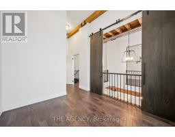 Set within the historic Riverbank Lofts, this exceptional two-bedroom, two-storey first-floor residence offers a rare blend of architectural heritage and contemporary sophistication in the heart of downtown Hespeler. Originally converted from an 1847 landmark, the loft celebrates its industrial roots with exposed wood beams, soaring ceilings, and expansive factory-style windows that flood the home with natural light and frame serene views of the Speed River. The main level features an airy open-concept layout designed for both entertaining and everyday comfort. Juliette balconies invite fresh air and add a subtle European touch, while the chef-inspired kitchen impresses with quartz countertops, premium appliances, and a cleverly concealed pantry tucked beneath the staircase. A stylish powder room completes the level. Upstairs, a dramatic catwalk creates separation between two private bedroom suites, each with its own beautifully finished ensuite bathroom, walk-in closet and sliding barn doors that pay homage to the building's historic past. This boutique loft includes two dedicated parking spaces and access to an impressive suite of amenities, including multiple resident lounges, a fully equipped fitness centre located directly across the hall, bike storage, and a pet wash station. Steps from your door, downtown Hespeler Village offers cafés, independent shops, riverside trails, and so much more. A truly distinctive loft-style condo, this home delivers refined urban living with historic soul. (id:61594)