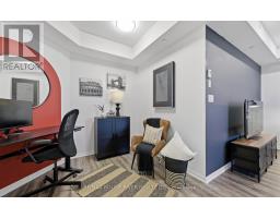 Welcome to 84 Aspen Springs Unit 106. Step into effortless condo living with a layout that truly sets this unit apart. Unlike the standard floor plans in the building, this suite offers a unique design that enhances both flow and functionality. The open-concept living and dining area feels bright and welcoming, ideal for everyday comfort or hosting guests. The kitchen is well-appointed with quartz countertops, an undermount sink, modern backsplash, and a peninsula with breakfast bar seating. A separate den provides a flexible space, perfect for a home office, reading nook, or additional dining area. The primary bedroom features a large closet and semi-ensuite access. Located on the first floor, this unit offers true everyday convenience with direct, stair-free access, no elevators, no waiting, just easy in-and-out living. With parking just steps from the entrance, daily routines like carrying groceries or coming home at the end of the day are seamless. Unwind on your private balcony overlooking the courtyard. Ideally situated minutes to shopping, restaurants, transit, a movie theatre, and Hwy 401. Amenities include a gym, party/meeting room, visitor parking, and playground (id:61594)