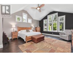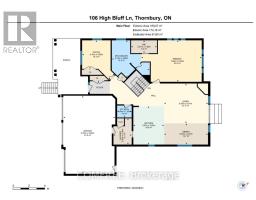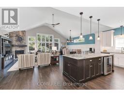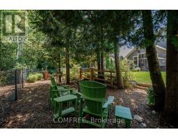 106 High Bluff Lane is located on one of the most sought after streets in Thornbury. This 2+2 Bedroom Bungalow with a 3-Car Garage, and over 3600sqft of living space, is on a private, fully fenced, park-like, 1/4 acre lot backing onto greenspace and a ravine. It is a beautifully landscaped property with close to $200K spent on perennial gardens, mature trees, inground sprinkler system, low voltage landscape lighting, interlock driveway that can easily accommodate 5 cars, interlock patios, and a 12' x 14' pavilion. There is also a garden shed with separate electrical panel. The large front porch is a great place to sit and relax. The main floor consists of Engineered hardwood floors and has a large open plan chef's dream kitchen with Bosch Appliances - 5 Burner Gas Cooktop, Built-in Range &Microwave/Convection oven, French 3-door Fridge, Dishwasher and a Marvel Beverage fridge. There is a Cathedral ceiling in the dining room and great room with floor to ceiling stone gas fireplace and huge windows & sliding door looking out to the backyard. A large primary bedroom has an ensuite with heated floors and walk in closet. A front bedroom/office completes the main floor. The basement boasts 8.5' ceilings with large, upgraded windows and the ultimate man cave with custom bar and a gas wood stove that keeps the basement comfortable all year long. There is also huge craft studio that could easily become a games room or gym space. 2 more nice sized bedrooms and a bathroom with heated floor complete the basement area. All the closets have been custom designed for the ultimate in storage solutions. Custom built-ins in the garage and a Generac generator are just some of the extra features of this property. You will have a 2-minute walk to access the Georgian Trail, a 5-minute walk to Goldsmith's Farm Market, a 20-minute walk to Foodland & LCBO and a 30-minute walk to town to enjoy any of the many coffee shops and restaurants (id:61594)