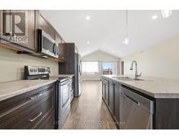 **Modern Raised Ranch Built in 2022** Welcome to this bright and thoughtfully designed bungalow offering open-concept living, with vaulted ceilings & premium layout, modern finishes, and excellent potential with an unfinished basement. **Open-Concept Main Level with Vaulted Ceilings** Enjoy a sun-filled living room with a large front window and seamless walk-out to a wooden deck with covered porch - perfect for relaxing or entertaining. The central kitchen features a large island, stainless steel appliances including fridge, stove, built-in microwave, and dishwasher, flowing into a spacious eat-in area with vaulted ceilings and vinyl flooring. The primary bedroom offers a walk-in closet and a private 3pc ensuite with a standing shower. Two additional bedrooms with closets and vinyl flooring are serviced by a 4pc main bathroom. Functional layout and natural light make this home ideal for comfortable everyday living.**Unfinished Lower Level- Endless Potential** The basement features high ceilings, large windows, and a utility room with tankless hot water heater, offering a great opportunity to create additional living space, recreation areas, or an in-law suite tailored to your needs.**Great Outdoor Space & Family-Friendly Setting** The property includes a double front driveway, single-car garage, and a backyard with covered porch and wooden deck - ideal for outdoor enjoyment. Located in a growing Chatham community, close to amenities, schools, and parks.A fantastic opportunity for buyers seeking modern bungalow living with room to grow. (id:61594)