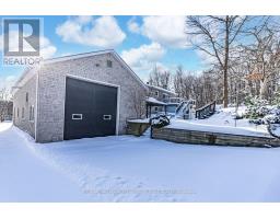 WELCOME TO YOUR OWN PRIVATE 3+ ACRES OF MUSKOKA PARADISE WITH A 1400 SQ FT HEATED GARAGE/SHOP, RESORT-STYLE OUTDOOR LIVING, & RUSTIC CHARM! This 3+ acre retreat showcasing a Muskoka-style landscape with rock outcroppings, abundant wildlife, and a private forested EP backdrop, all located just 5 minutes from Hwy 400 and the Oak Bay Golf Club, under 10 minutes to marinas, and close to all everyday essentials. Enjoy year-round recreation with Mount St. Louis and Horseshoe Valley Ski Resort less than 30 minutes away, while Orillia, Barrie, and Midland are within 35 minutes for urban amenities. The 2-storey brick home boasts dramatic rooflines, stamped concrete walkways and steps, and a welcoming full-width covered front porch. The 1,400 sq ft insulated and heated garage is a standout with 13+ ft ceilings, radiant heat, compressed air lines, a paint spray booth, overhead storage, office and loft space, and multiple access points including dual garage doors, an oversized roll-up rear door, a side man door, and interior entry. Outdoor living shines with a patio and screened pergola, a powered tiki bar and firepit, a two-tiered deck with covered storage below, and a garden shed with a wood storage overhang, all complemented by a 5-zone irrigation system. The open kitchen, dining, and living area features a walkout to the back patio, plus a pantry, family room, and a renovated bathroom with heated floors, granite counters, and a steam shower. The upper level offers 4 bedrooms, including a primary retreat with a walk-in closet, fireplace, and a walkout to the deck, paired with a second full bathroom with heated floors and granite counters. Shiplap-style ceilings with faux wood beams add character, while thoughtful upgrades include vinyl and tile flooring, modern door hardware, fresh paint, and updated electrical. From the striking exterior to the thoughtful interior finishes, this one-of-a-kind #HomeToStay promises a life of natural beauty, convenience, and endless enjoyment. (id:61594)