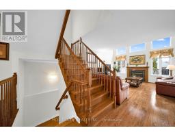 Welcome to this beautifully upgraded Richcraft Dellwood model offering over 3,000 sq.ft. of living space in the highly sought-after Barrhaven community. Situated on a quiet street at 106 Portrush Avenue, this 5-bedroom, 4-bathroom + den single-family home features a bright open-concept layout highlighted by soaring cathedral ceilings, large sun-filled windows, and hardwood flooring throughout the main and upper levels. The main floor includes a private den ideal for a home office, a formal dining area, and a spacious great room with a cozy gas fireplace, along with added crown molding that enhances the overall elegance. Upstairs, the primary bedroom offers a practical layout with a well-appointed 4-piece ensuite, while the additional 3 generously sized bedrooms and 1 full bathroom complete the second floor. The fully finished basement provides excellent additional living space with a bedroom, full bathroom, recreation area, and ample storage. Enjoy a private, fully fenced backyard complete with stamped concrete patio (2020) and a shed (2019), perfect for outdoor entertaining. Recent upgrades include roof (2021), furnace (2026), central A/C (2018), granite countertops (2020), central vacuum (2018), and basement finishing (2025). Hot water tank is owned (2024), with no rental fees. Conveniently located just steps to Barrhaven Marketplace, schools, parks, and community centres. (id:61594)