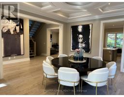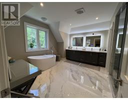 Move in ready Luxury home in Etobicoke.Very spacious custom home with double car garage& double driveway with parking for extra 4 cars.Beautiful house featuring brick and stone work on the outside with oversized windows that provide lots of light.High ceiling foyer with oversized closet and open stairs lead to main floor featuring powder room, office with french doors, living room with gas fireplace. Round coffered ceiling in dining room, centre island in kitchen that overlooks backyard trees.Stainless steel top appliances and quartz counters in kitchen.Breakfast area as well.Family room with gas fireplace and walk out to deck.Stairs lead to upstairs hallway with big skylight and access to fairly huge Primary Bedroom featuring walk in closet,5 piece ensuite bath with free standing tub and dual vanity sink.Other 3 bedrooms on the same floor all come with own ensuite baths and 2 with walk in closets as well.Laundry on the same level and linen closet for your convenience.Finished above ground basement features 2nd Family room with glass enclosed wine storage wall, full bath, extra bedroom and rec room.Walk out from basement to backyard and garage.Close to subway station, airport,city.Very desirable school district.Close to park, shops,mall.Amazing house great for entertaining and very comfortable to live in. (id:61594)