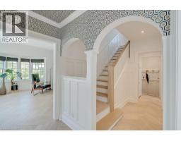 Welcome to this beautifully renovated 4 bedroom, 2.5 bath home offering over 3400 sq ft of living space, set amongst majestic trees and nestled within the historic gates of Indian Point. The main level showcases heated floors and exquisite herringbone hardwood, flowing into a custom designer kitchen featuring a large island, wall ovens, paneled fridge and dishwasher, and striking light fixtures. Oversized sliding patio doors open wide to create seamless indoor outdoor living. The cozy living room features a gas fireplace with a floor to ceiling surround and inset for your TV. The second floor includes three generous bedrooms with walk in closets, hardwood throughout and a stunning updated main bath with heated floors. The third level offers a private bedroom retreat with a den area and walk in closet ideal for guests or a home office. The finished lower level has a spacious recreation room, 3 piece bath, and ample storage. A double garage provides convenience, while the prime location offers quick access to Spencer Smith Park, major highways, downtown Burlington, and its vibrant shops and restaurants. This home combines luxury, location, and lifestyle! (id:61594)