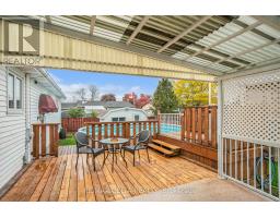 Welcome to this beautifully maintained brick bungalow, offering the perfect blend of comfort, style, and thoughtful upgrades throughout. The large, bright kitchen features solid oak cabinetry and built-in appliances, flowing seamlessly into a spacious and inviting living room-ideal for everyday living and entertaining. The primary bedroom includes a convenient 2-piece ensuite, while the fully finished basement adds exceptional bonus space with a cozy gas fireplace, abundant storage, and a newly renovated bathroom completed in 2024. The bedrooms showcase new flooring installed in 2025, enhancing both style and comfort. Step outside to a generous, fully fenced backyard with a pool-perfect for summer entertaining. The corner lot adds privacy and curb appeal, creating a peaceful outdoor retreat. Notable updates include a 200-amp electrical panel, an owned on-demand hot water heater (2023), air conditioning (2009), and a roof replaced in 2014. The front windows and front door have also been updated. The home is now heated with natural gas; however, the original electric baseboards remain in place and fully functional if ever needed. All of this is just a short walk to the village, parks, and local amenities. Move-in ready with charm, upgrades, and a fantastic location - this is truly a must-see! (id:61594)