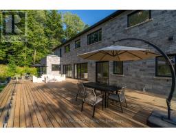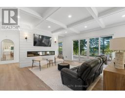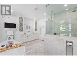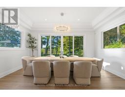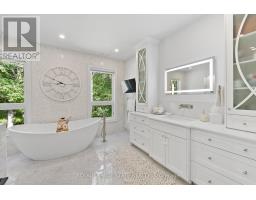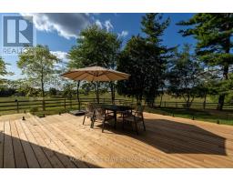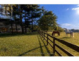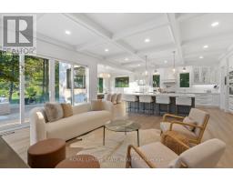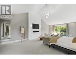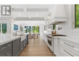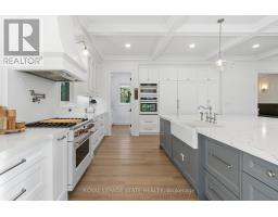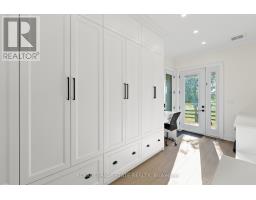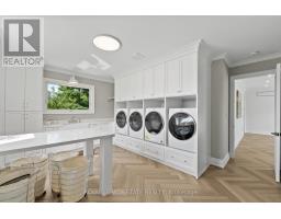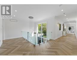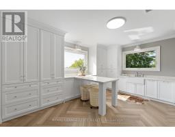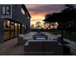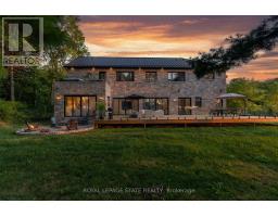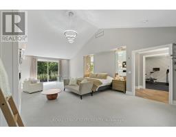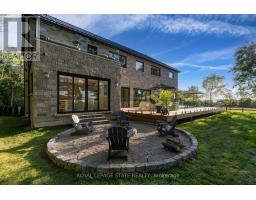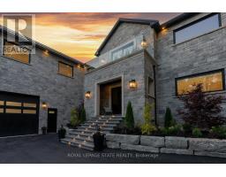 Refined luxury meets country serenity in the heart of Ancaster. Set among rolling hills and open skies capturing breathtaking sunset views, with grazing horses and a level of privacy that feels remote-yet only minutes to Ancaster's top-rated schools, shopping, dining, and sports facilities. Conservation trails are just steps from your doorstep. Spanning over 7,600 sqft. of curated living space, this home is defined by natural light and seamless indoor-outdoor living. Soaring 10' ceilings and expansive sliding doors frame panoramic views of forest, open fields, and surrounding countryside. The main level is anchored by a chef's kitchen with a 10' island, dual dishwashers, concealed pantry with wine and beverage fridges, and a Bosch built-in coffee machine. Open-concept living and dining spaces extend outdoors through three 12' sliding doors. This level also features a versatile playroom or bedroom with deck walkout, mudroom, powder room, and ample storage. Upstairs, herringbone flooring flows to four spacious bedrooms, all with ensuite access. The primary suite offers a heated marble spa-inspired ensuite, dual walk-in closets, wet bar, a terrace with hot tub, and direct access to a private gym. A guest suite includes a spa ensuite and coffee bar, while two bedrooms share a Jack & Jill bath. A standout laundry room features extensive cabinetry and dual washer/dryer sets. The finished lower level is designed for entertaining, offering a spacious lounge with wet bar, wine area, private office, yoga studio, fifth bedroom, and full bath with sauna. With a private entrance and direct garage access, it also offers excellent in-law suite potential. Outdoors, a wraparound patio overlooks manicured grounds, mature trees, and rolling countryside, with ample space to create a custom pool and outdoor retreat. A heated and cooled garage with 16'4" ceilings, golf simulator, parking for up to 18 vehicles, and a premium (20K) water system complete this exceptional offering. (id:61594)