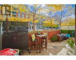 Welcome to effortless main floor living in the heart of Port Credit. This beautifully designed 1 bedroom plus den suite offers 903 sq. ft. of stylish, open concept space and the rare luxury of a true walk out terrace, not a balcony. The walk out terrace is ideal for enjoying morning coffee, gardening, and summer BBQing while creating your own private outdoor retreat.The thoughtfully designed kitchen showcases sleek grey quartz countertops, ample prep space, and a seamless flow into the spacious living and dining area, ideal for entertaining or relaxing at home. The generous primary bedroom features a walk in closet with custom organizers, while the separate den provides versatile space for a home office, guest area, or cozy reading nook.A standout feature is the walk in laundry room, offering exceptional storage and functionality rarely found in condo living. Even the storage locker is conveniently located on the same ground level for easy access.Perfectly positioned just steps to the gym, lobby, and courtyard, this suite also offers added privacy with no neighbours on one side. Skip the elevator and step directly outside to enjoy the fresh lake air.Live just moments from the waterfront, marina, boutique shops, and vibrant restaurants that make Port Credit one of Mississauga's most desirable lakeside communities. (id:61594)