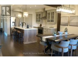 Welcome to the award-winning Cottages of Lora Bay. This Builder's 5-bedroom and 4-bath Model Home features over 3500 sq. ft. of finished modern living space, showcasing fine interior design with distinguished exteriors and exquisitely appointed interiors: fabulously flowing open concept design from top to the bottom level, main floor primary with ensuite, walk-in closet, luxurious wall coverings, custom trim & door painting and stylish finishes. The bright Great Room boasts soaring vaulted ceilings with impressive lighting and a floor-to-ceiling stone gas fireplace. The professionally designed kitchen features a walk-in pantry, upgraded quality cabinets in two different finishes, an oversized quartz island, upgraded appliances and lighting. A trendy powder room with mosaic porcelain flooring, a stone sink and practical pocket doors. Upper level boasts two bedrooms and a cozy loft overlooking the great room, which can be used as an office. Over $200,000 spent in upgrades, including a fully finished basement, two additional spacious bedrooms, a full bathroom, plus a very trendy wine cooling room with a drink bar behind the glass wall. Two-car garage equipped with professional cabinets providing plenty of storage, insulated doors, and superior finished garage flooring providing stain-free durability. The textured surface provides added traction, ensuring the safety of you and your family. GDO and an EV car charger for your convenience. The hot tub in the garden is an oasis of peace and relaxation. Professional landscaping all around the property with lush trees and plants. A minute's walk to Lora Bay community Beach Club for swimming, kayaking & beach volleyball. Free access to the gym at Lora Bay Country Club. Conveniently located minutes from Thornbury's downtown shops, restaurants & cafes. Sport and hiking enthusiasts can enjoy a whole year of entertainment with a walk to The Golf Club at Lora Bay or a short drive to other golf clubs and private skiing. (id:61594)