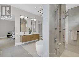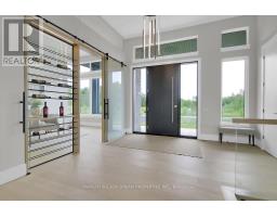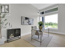 This custom designed bungalow offers both elegance and sophistication. Spectacular lot in estate subdivision with executive homes. Built by Patterson Homes, this residence has never been lived in! Attractive Dominion stone exterior and grand circular driveway. This breathtaking home is graced with magnificent scale, an abundance of natural light, high ceilings and an open floor plan. Whether you want privacy and relaxation or the perfect entertainment venue, this property is it! Step inside and the interior unfolds seamlessly with classic and contemporary design elements, offering a relaxed elegance. Flooring is 7" Vidar white oak hardwood and 30" x 30" porcelain tiles from Italy. This beautifully appointed home features a gourmet kitchen equipped with Fisher Paykel high-end appliances, a large quartz waterfall island, custom Louis L'artisan cabinetry and a butler's pantry. Flowing effortlessly into spacious living areas adorned with custom stone gas fireplace. Triple patio doors opening to the expansive hardwood deck, allowing for effortless indoor-outdoor entertaining. Elegant office with frameless glass sliding doors and custom wine display which can showcase 47 bottles. The primary suite boasts a spacious bedroom with patio doors to deck, a spa-like ensuite with a soaker tub, a walk-in double shower, dual vanities, heated floor and a custom walk-in closet. Two additional bedrooms with shared bath. Oversized mudroom with powder room and dog washing station. Solid maple floating staircase to lower level. High ceilings and in-floor radiant heating throughout. Spectacular 700 sq ft rec room with wet bar, fully sound insulated theatre, versatile bonus space perfect for fitness centre, 4th bedroom, full bath with sauna, powder room, ample storage and direct access from garage. Fully insulated massive 5 car garage features 14' ceilings and fast EV charger. Windows by Marlboro custom windows. Lutron lighting and networking wiring throughout. Tarion warranty include (id:61594)
