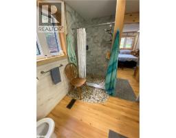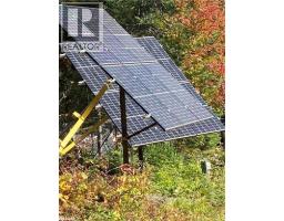 Year round new home with 3 bedrooms and 2 bathrooms on 16.5 acres OFF GRID. Wood accents throughout the home with open concept and hardwood flooring. Triple glazed windows and total privacy with a winding driveway from a year round paved road only 15 minutes from Bracebridge. This home has a fulll insulated dry basement. Hot water demand, propane forced furnace, airtight woodstove that is WETT Certified with a fresh air access to keep extra comfort in cold winter. Two large solar panels with a 10,000 kilowatt microgreen system with 8 AGM Batteries. Also a back up Generator with a 12,000 KW that runs the entire home. Drilled 120 foot well with 13 gpm and lots of water you need. Metal roof so no shoveling. The septic is a media filtering system. Over 9 foot Sea Container storage with lots of room for storage. With 16.5 acres and lots of room to hike and play with your family. (id:61594)