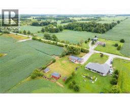 Beautifully presented, affordable country property located 10 minutes east of Simcoe’s desired amenities that include Hospital, pools/parks, modern shopping centers, fast food eateries & eclectic downtown shops - in route to the popular destination towns that dot Lake Erie’s Golden South Coast. Includes tastefully renovated brick bungalow positioned handsomely on 0.57 acre manicured lot, naturally hidden by mature cedar hedge row, boasting 200ft x-deep lot abutting acres of lush, fertile farm fields. Recently painted 340sf street facing, tiered entertainment deck provides access to 1045sf open concept main level highlighted with bright living room - segueing to large eat-in kitchen sporting ample cabinetry, new maple butcher block countertops, brush nickel hardware, tile back-splash, appliances & patio door walk-out to impressive 3-seasons sunroom enjoys walk-out to private 240sf rear deck overlooking panoramic rural vistas. Design continues with 3 sizeable East-wing bedrooms, updated 4pc bath & roomy corridor leading to attached 375sf drywalled/painted garage boasting roll-up garage door & walk-down basement staircase. New low maintenance laminate style flooring through-out main level compliments the freshly redecorated country themed décor with distinct flair. Large unspoiled 1045sf lower level is ready for personal finish - houses laundry station & dwelling’s mechanicals include n/gas furnace equipped with AC-2023, n/gas water heater, 100 amp hydro service, water softener/UV water purification system & water pump/pressure tank. 3 versatile sheds (8 x 10 + 14 x12 + 16 x 24 - includes hydro, concrete floor & roll-up door) are strategically situated in the rear yard providing desired storage options. Notable extras - metal roof-2022, baseboard/trim-2022, LED pot lights, crown moulded ceilings, vinyl clad windows, all appliances, excellent drilled water well, independent septic system, oversized aggregate driveway. This “Simcoe Sweetie” will not Disappoint! (id:61594)