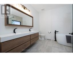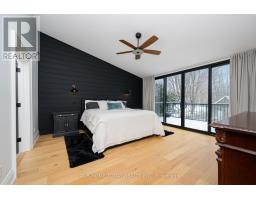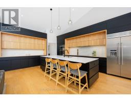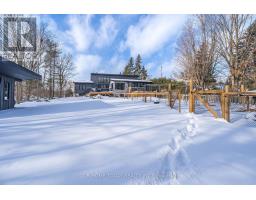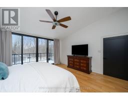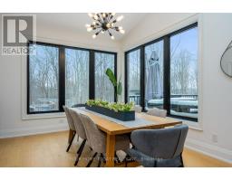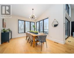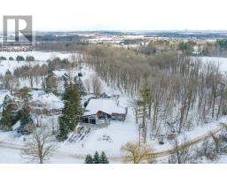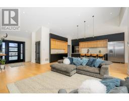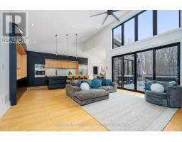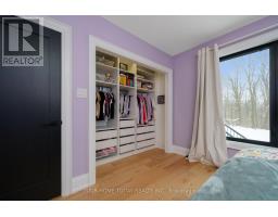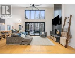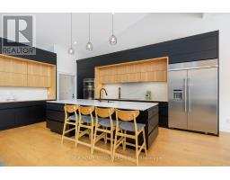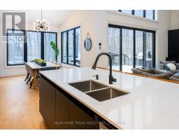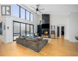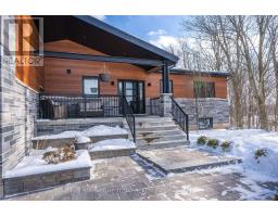 Set on a rare and private half-acre lot surrounded by mature Niagara Escarpment trees, this architecturally distinctive home offers refined country living with the feel of a modern cottage, without the commute to cottage country. Located on an exclusive street where homes rarely come to market, this is a truly special offering. Rebuilt in 2021, the home is designed to embrace its natural setting. The open-concept great room features soaring 16-foot vaulted ceilings, engineered natural hickory floors, and a striking floor-to-ceiling wood-burning fireplace. Expansive floor-to-ceiling windows span the rear of the home, with forest views and filling the space with natural light. When the trees are in full bloom, the home enjoys complete privacy. The chef-inspired kitchen showcases a custom Euro-style design with quartz countertops, quartz backsplash, and an impressive 10' x 4' island-perfect for entertaining while enjoying uninterrupted views of nature from every angle of the kitchen, dining, and living areas. The primary suite is privately located off the dining area and offers a peaceful retreat with a spa-like ensuite featuring a freestanding soaker tub, oversized glass shower, double vanity, and a large custom walk-in closet. A separate wing, tucked behind a pocket door off the living room, includes two spacious bedrooms and a beautifully finished 3-piece bathroom, ideal for family living or hosting guests. Outdoor living is exceptional, with professionally landscaped stone patios, tiered gardens, and multiple seating areas set against a serene backdrop. Completing the property is a attached garage with a finished second-level studio and storage, ideal for a home office, creative space, or gym. A rare opportunity to enjoy private, nature-inspired luxury on a highly sought-after street. (id:61594)