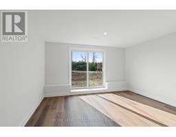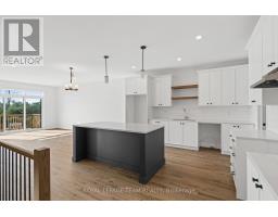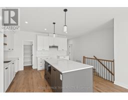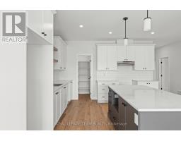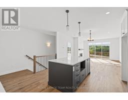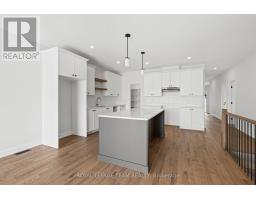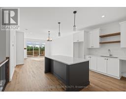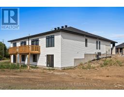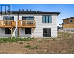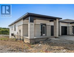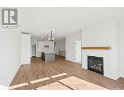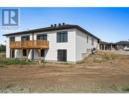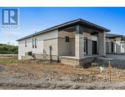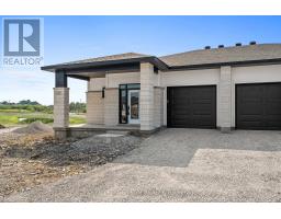 Set in Brockville's Stirling Meadows, this newly built semi-detached bungalow blends contemporary design with a convenient location, just moments from Highway 401 and close to shopping, dining, and recreational amenities. The Grenville Walkout model by Mackie Homes offers approximately 1,580 square feet of thoughtfully designed living space, including three bedrooms, two bathrooms, main-level laundry, a single-car garage, and a walkout elevation that opens to the backyard, offering future possibilities. A covered front porch welcomes you inside, where a bright, open-concept layout connects the kitchen, dining area, and living room. The kitchen is appointed with ample cabinetry, quartz countertops, an elongated tile backsplash, a pantry, and a centre island that anchors the space. The living room features a natural gas fireplace and access to the sun deck, extending the living area outdoors. The primary bedroom includes a walk-in closet and a four-piece ensuite with a dual-sink vanity. Two additional bedrooms and a full bathroom complete the main-level layout. (id:61594)