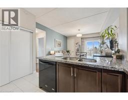 $321 MonthlyWelcome to this stunning and meticulously maintained one bedroom plus den condo in Guelph's sought-after south end, complete with a dedicated parking space and a convenient storage locker located on the same floor. This sunlit unit boasts 9 ft ceilings, oversized windows, and tastefully updated hardwood flooring in the living area and carpet in the bedroom creating a bright and welcoming atmosphere. The open concept layout is flooded with natural light, making the space feel airy and spacious. The versatile den offers endless possibilities as a home office, study, or guest room, catering to your specific needs. The modern kitchen offers plenty of space and is fitted with granite countertops, a breakfast bar, updated appliances, backsplash, and seamless access to the stackable laundry closet. Enjoy your morning coffee or unwind after a long day on the private balcony that overlooks serene green space, providing a peaceful retreat right at home. The prime location is unbeatable, just minutes away from the University of Guelph, Stone Road Mall, grocery stores, restaurants, and the bus station, with easy access to the 401 for commuters. Whether you're a first-time buyer, downsizing, or investing, this well-appointed condo offers a fantastic opportunity in a highly desirable south-end location, with every convenience at your fingertips. Don't miss your chance to call this beautiful condo your new home! (id:61594)