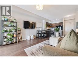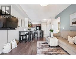 Welcome to this stunning and meticulously maintained one bedroom plus den condo in Guelph's sought-after south end, complete with a dedicated parking space and a convenient storage locker located on the same floor. This sunlit unit boasts 9 ft ceilings, oversized windows, and tastefully updated hardwood flooring in the living area and carpet in the bedroom creating a bright and welcoming atmosphere. The open concept layout is flooded with natural light, making the space feel airy and spacious. The versatile den offers endless possibilities as a home office, study, or guest room, catering to your specific needs. The modern kitchen offers plenty of space and is fitted with granite countertops, a breakfast bar, updated appliances, backsplash, and seamless access to the stackable laundry closet. Enjoy your morning coffee or unwind after a long day on the private balcony that overlooks serene green space, providing a peaceful retreat right at home. The prime location is unbeatable, just minutes away from the University of Guelph, Stone Road Mall, grocery stores, restaurants, and the bus station, with easy access to the 401 for commuters. Whether you're a first-time buyer, downsizing, or investing, this well-appointed condo offers a fantastic opportunity in a highly desirable south-end location, with every convenience at your fingertips. Don't miss your chance to call this beautiful condo your new home! (id:61594)