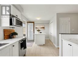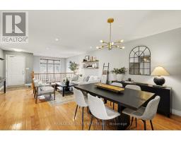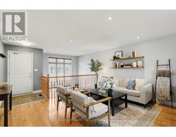 This move-in ready 2-bedroom, 2-bath stacked condo offers style, comfort, and convenience in a prime location just steps from transit, shopping, parks, and recreation. The home features dramatic two-storey windows that flood both the open-concept main floor and the lower-level family room with natural light. The main level showcases a spacious living and dining area with gleaming hardwood and pot lights throughout, creating a warm and inviting atmosphere. At the rear, the generous kitchen offers a functional layout with abundant cabinetry, an eat-in area, and direct access to a private deck with no rear neighbours-perfect for outdoor dining or relaxing. Updated tile flooring adds a fresh, contemporary touch, and a well-appointed powder room completes this level. The lower level is a true highlight, featuring upgraded laminate flooring throughout, soaring ceilings, and expansive windows in the impressive family room, ideal space for entertaining or unwinding. The primary bedroom includes a walk-in closet and direct access to a 4-piece ensuite. A second bedroom provides flexibility for guests, a home office, or additional living space. One surface parking spot conveniently located right outside the front door, along with ample visitor parking. Situated in a vibrant, welcoming community, it's a fantastic opportunity for first-time buyers or those looking to downsize. Book your viewing today! (id:61594)