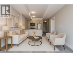 Located in Tower 3 of the Garment Street Condos, Suite 1209 delivers refined urban living in the heart of Kitchener’s Innovation District. Thoughtfully designed to feel far larger than its 540 square feet, the residence impresses with elevated ceiling height, wide-plank flooring, and expansive floor-to-ceiling windows that flood the space with natural light. The modern kitchen is both stylish and functional, featuring contemporary cabinetry, quartz countertops, stainless steel appliances, a coordinating tile backsplash, and a generous peninsula ideal for casual dining, entertaining, or work-from-home flexibility. The open living area is bright and welcoming, enhanced by professionally installed roller shades—including the patio door—offering privacy and light control rarely included as standard. The bedroom is a true standout, featuring floor-to-ceiling windows, a walk-in closet, and a calm, airy atmosphere that distinguishes it from comparable units. A spacious four-piece bathroom and convenient in-suite laundry complete the interior. The unit includes ONE underground parking space and a secured entry storage locker, both conveniently located on level P1. Residents enjoy an exceptional array of amenities, including a resort-style rooftop pool, fitness centre, yoga studio, sports court, private theatre, entertainment lounge with kitchen, landscaped rooftop terrace with BBQs, pet run and wash station, secure bicycle parking, and building-wide wireless internet. Steps from downtown Kitchener, Victoria Park, dining, shopping, transit, and the ION Light Rail, the location also offers easy access to the GO Train and major tech and institutional employers. An ideal opportunity for professionals, first-time buyers, or investors seeking a low-maintenance home in a highly connected, high-demand neighbourhood. Walk Score: 87 | Transit Score: 64 | Bike Score: 85 (id:61594)