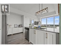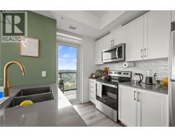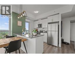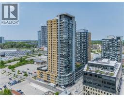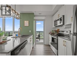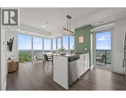 Luxury Corner Unit at Garment Street Condos-Experience elevated urban living in the heart of Kitchener’s Innovation District. This bright, south-facing corner unit offers 2 bedrooms, 2 bathrooms, a locker, and one underground parking space—perfectly blending style and convenience. Floor-to-ceiling windows and an open-concept layout flood the 811 SF space with natural light. The modern kitchen features quartz countertops, a breakfast bar, subway tile backsplash, and premium appliances, flowing seamlessly into the integrated dining area and living room. Step out onto your extra-wide private balcony and take in panoramic city views. The spacious primary suite boasts a walk-in closet and a stylish 3-piece ensuite, while the second bedroom and full 4-piece bath provide flexibility for guests or a home office. Laminate flooring and in-suite laundry add to the move-in-ready appeal. Garment Street Condos offers exceptional amenities: rooftop pool, fitness centre, yoga studio, basketball court, BBQ terrace, co-working spaces, media room, pet run, concierge service—and high-speed internet is included in the condo fees. Situated just steps from top employers like Google’s Canadian HQ, Communitech, Miovision, Vidyard, D2L, and ApplyBoard, and minutes to the University of Waterloo’s Pharmacy School and new School of Medicine, this location is unmatched for professionals and investors alike. Walk to Victoria Park, the LRT Central Station, the GO Train, and downtown Kitchener’s top restaurants, cafes, breweries, and boutiques. Whether you're a professional, investor, or seeking low-maintenance luxury, this is the one. Live where tech, culture, and convenience meet—book your private showing today! (id:61594)